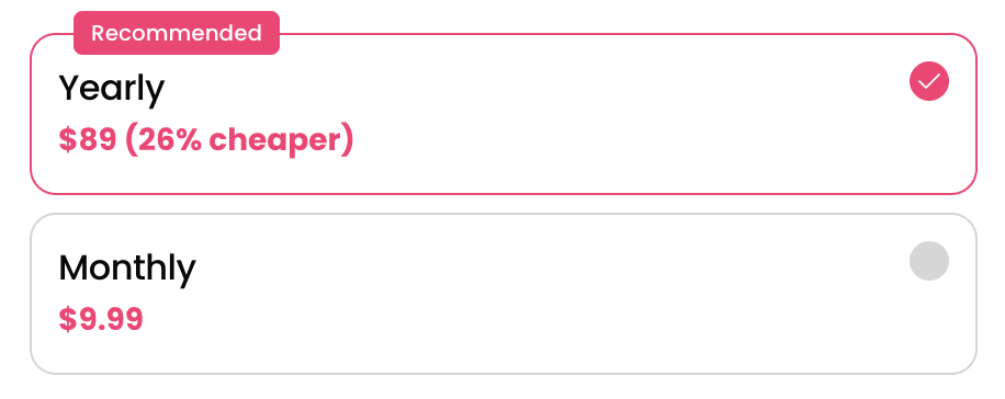 - Choose your preferred subscription payment plan and save by selecting the ‘Update subscription’ button.